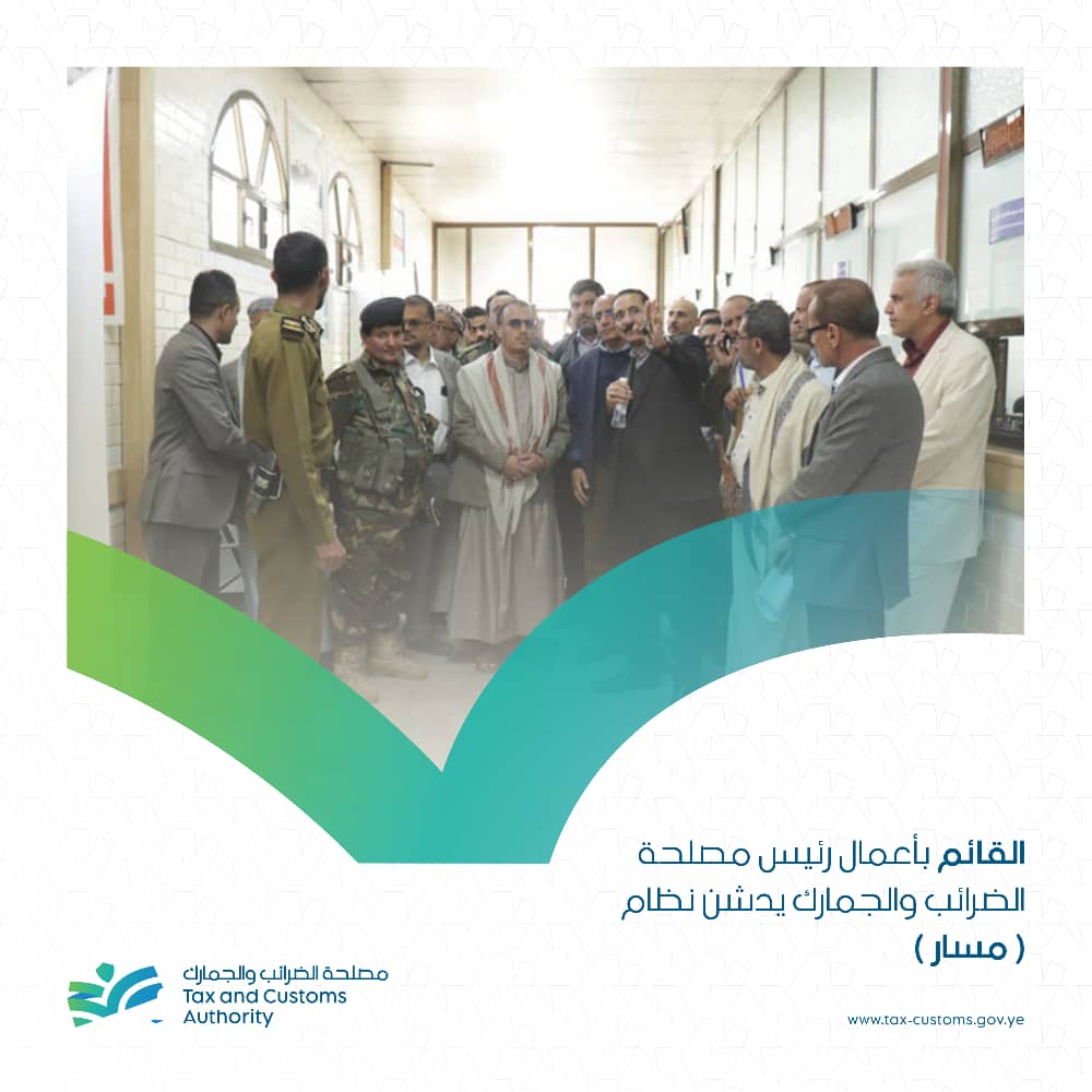 دشن القائم بأعمال رئيس مصلحة الضرائب والجمارك، الدكتور إبراهيم علي مهدي، اليوم، العمل بنظام خدمة الجمهور «مسار» مع بداية العام 2026م، وذلك في إطار توجهات المصلحة لتطوير الأداء المؤسسي وتحسين مستوى الخدمات المقدّمة للجمهور.